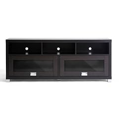Baxton Studio Swindon Modern TV Stand with Glass Doors Best Price provided by Baxton Studio ,is always product number.B0069ZTH4K It's benefit Contemporary TV stand . MDF with dark brown laminate veneer . 2 Sliding overhead-style doors with glass panels . Silver drawer pulls and legs . Holes in rear for easy cable management . .An individual's Has the ability to ... See More.